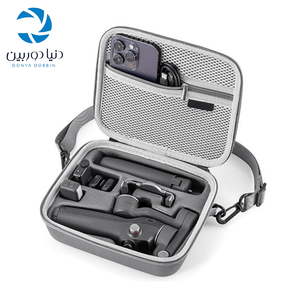 • سایز استاندارد و کاملاً هماهنگ با Osmo Mobile 8 — گیمبال، پایه، ماژول جانبی و کابل شارژ را به‌راحتی در خود جای می‌دهد.