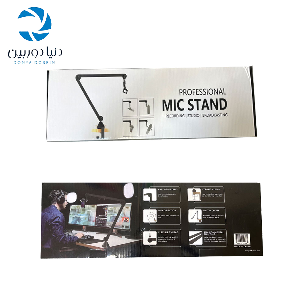 این پایه با بهرهگیری از ساختار قابل تنظیم، به شما اجازه میدهد ارتفاع و زاویه قرارگیری میکروفون را مطابق نیاز خود تنظیم کنید. بازوهای مستحکم و پایه ضدلغزش، ثبات فوقالعادهای ایجاد کرده و از تکان خوردن یا افتادن میکروفون جلوگیری میکند.