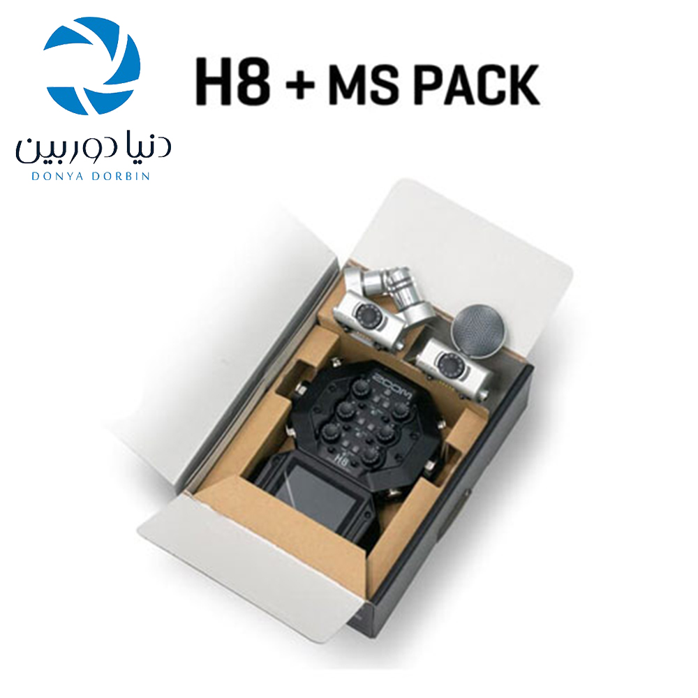 رکوردر صدا زوم Zoom H8 + MS Pack Ltd. Edition  یک مجموعه کامل و پیشرفته برای ضبط صدای باکیفیت در پروژه‌های حرفه‌ای صدا، موسیقی، پادکست، فیلم‌سازی و صدابرداری محیطی است. این دستگاه با طراحی ماژولار، امکانات گسترده و رابط کاربری لمسی، یکی از پیشرفته‌ترین رکوردرهای دستی کمپانی Zoom به شمار می‌رود. رکوردر H8 دارای ۴ ورودی XLR و ۲ ورودی XLR/TRS کومبو با پری‌امپ‌های قدرتمند و نویز بسیار پایین است که امکان اتصال هم‌زمان میکروفون‌های حرفه‌ای، سازهای موسیقی و تجهیزات صوتی دیگر را فراهم می‌کند.
